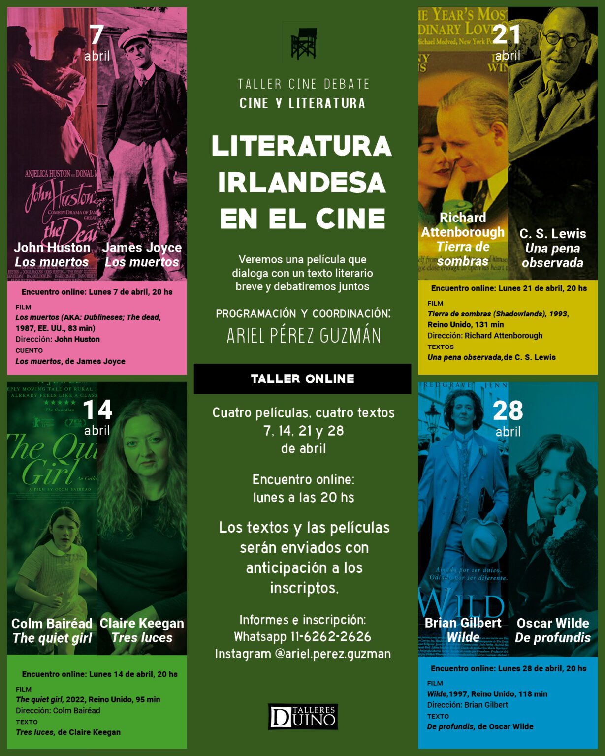 Los textos y las películas serán enviados con anticipación a los inscriptos.