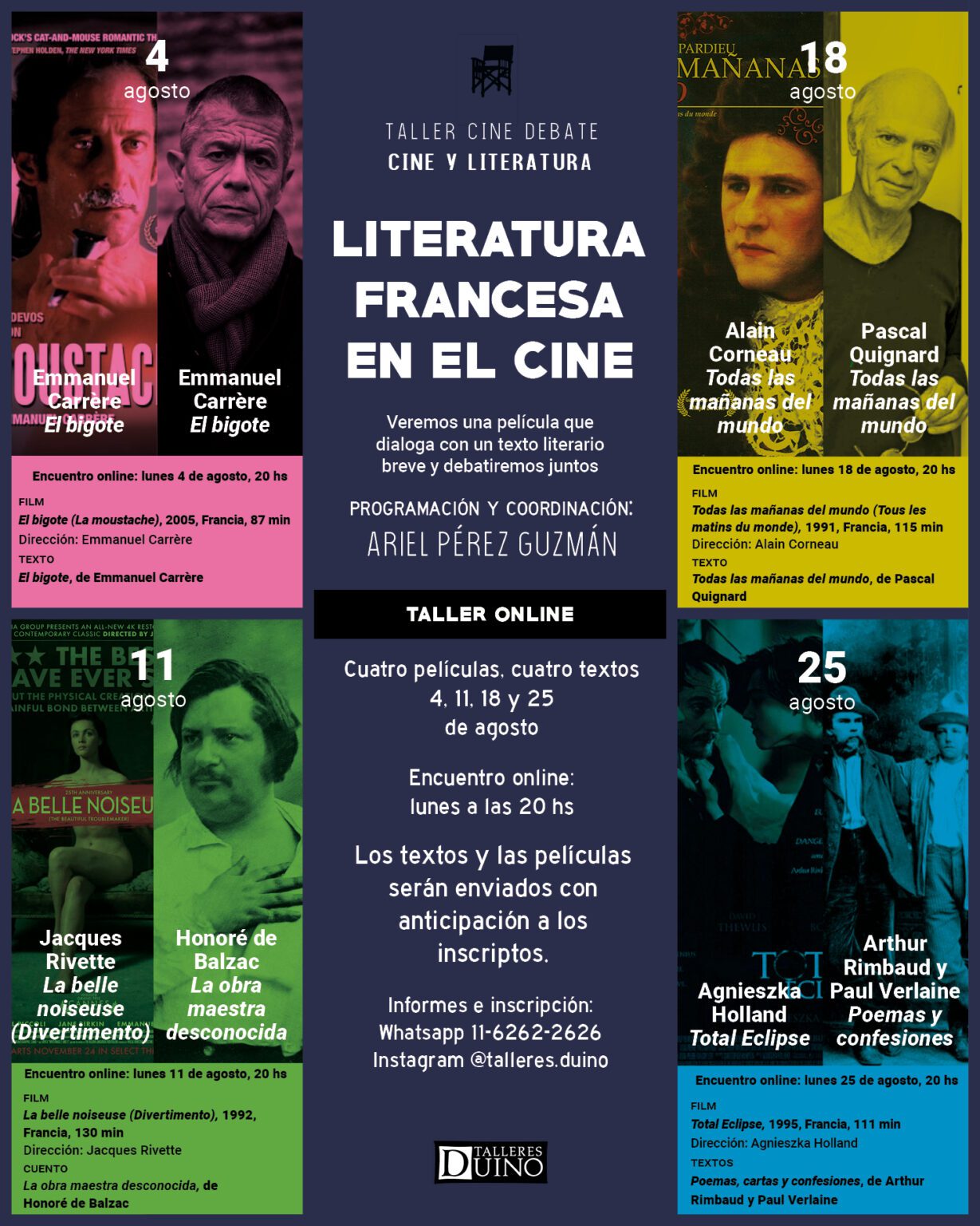 Los textos y las películas serán enviados con anticipación a los inscriptos.