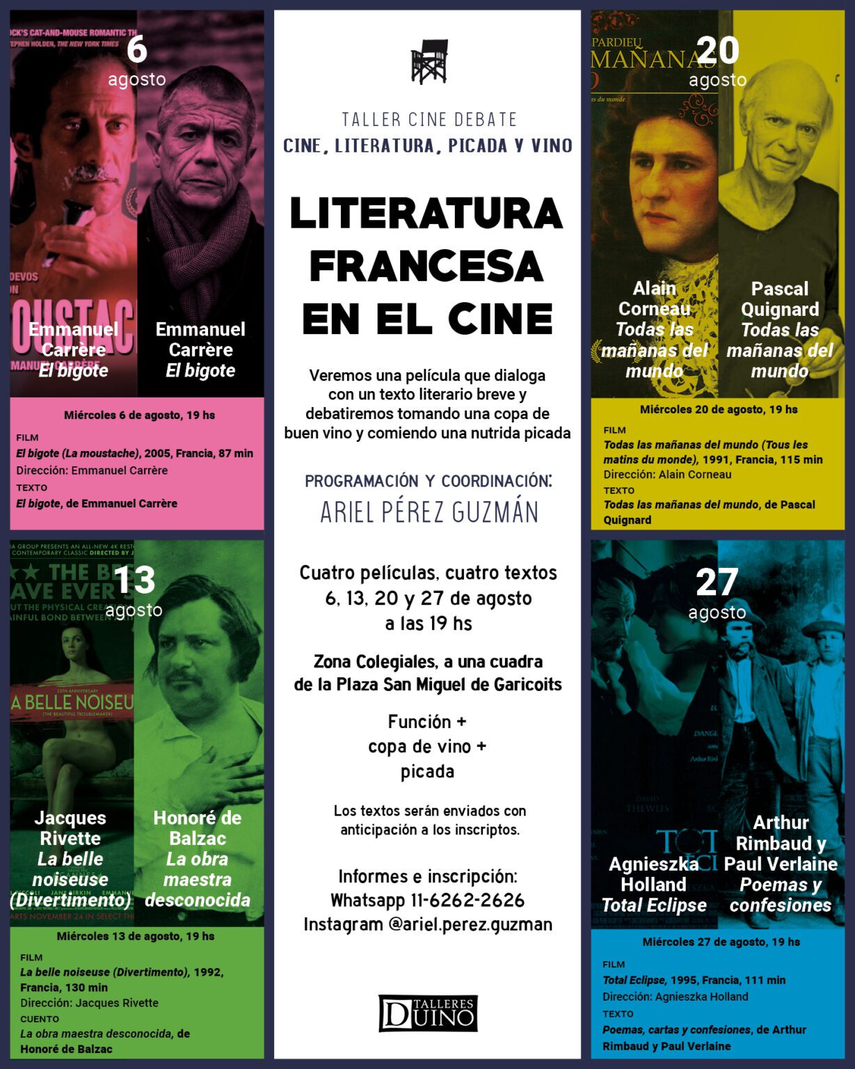 Veremos una película que dialoga con un texto literario breve y debatiremos tomando una copa de buen vino y comiendo una nutrida picada