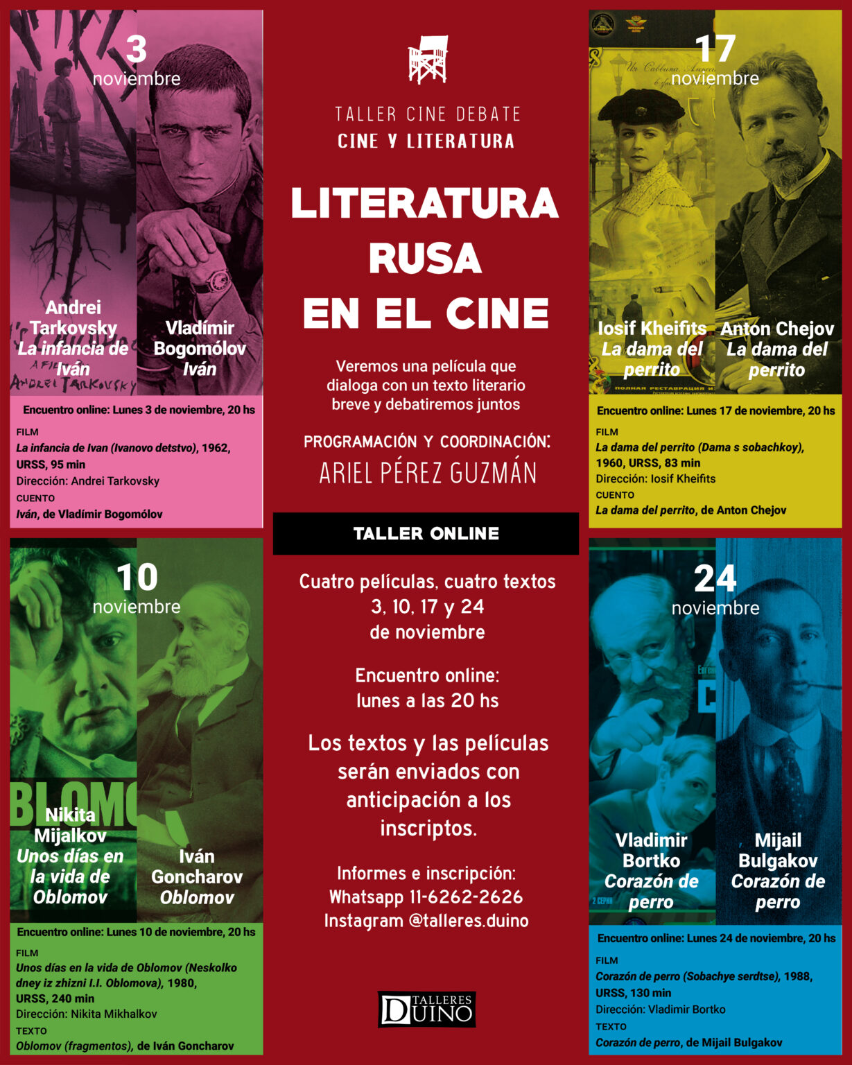 Los textos y las películas serán enviados con anticipación a los inscriptos.